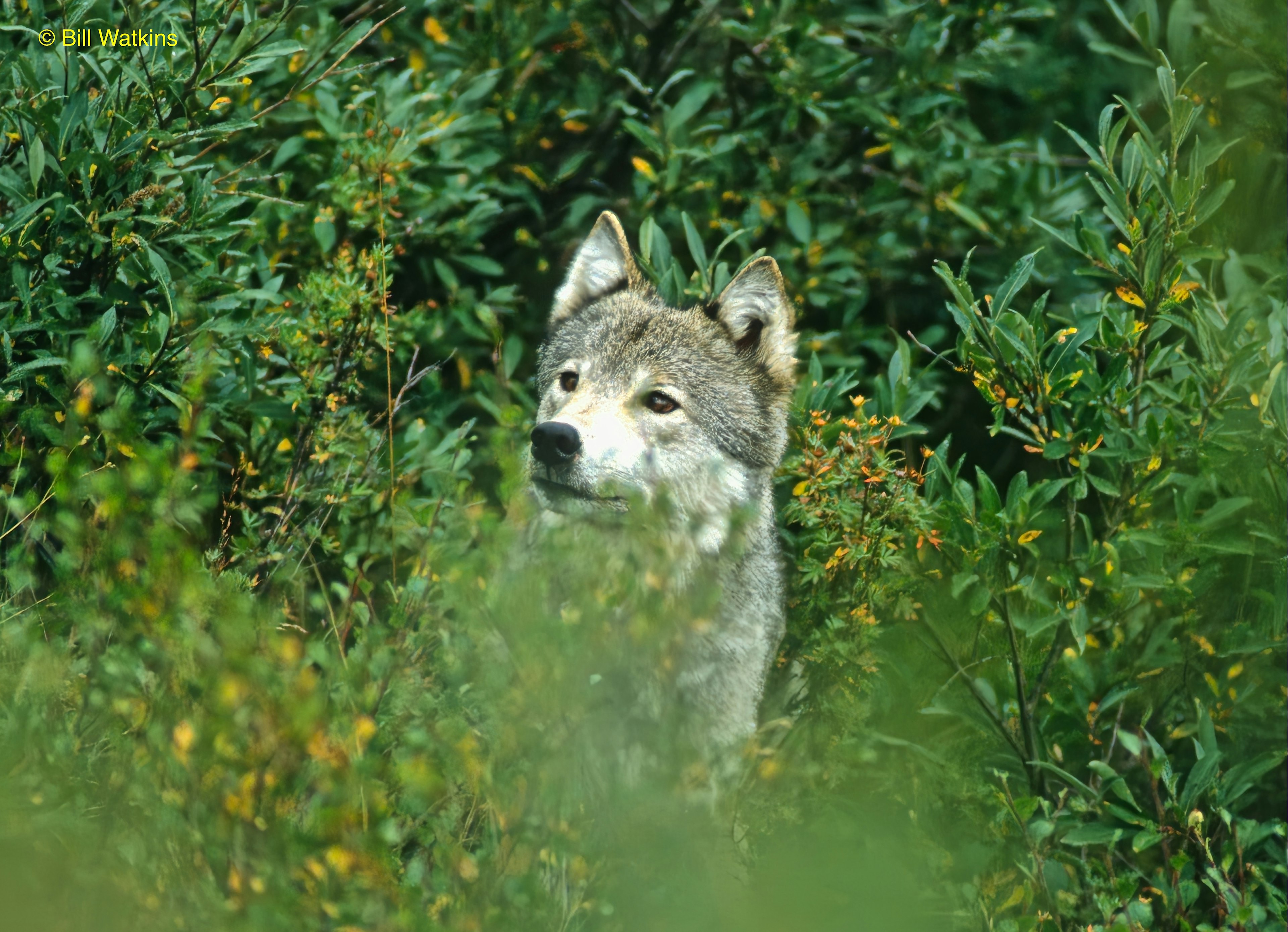 A wolf looks above the willows/East Fork Family Group/West Polychrome/Denali National Park/Interior Alaska/Summer 1994/Film